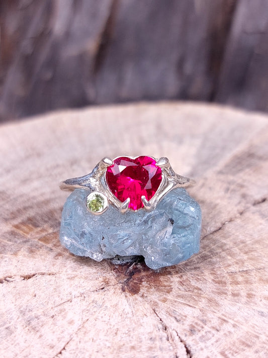 Anello “Cuore di Mamma” con Rubino Sintetico e "Figlio" di peridoto