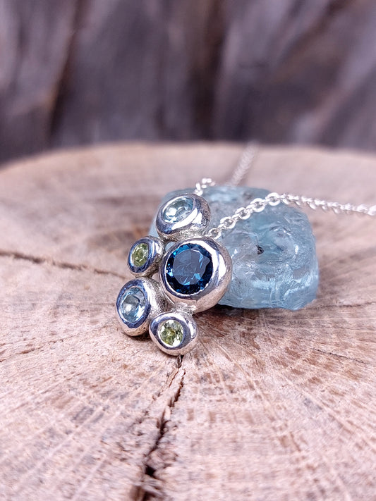 "Ciottoli" In argento con Topazio London, Topazi Sky e Peridoti
