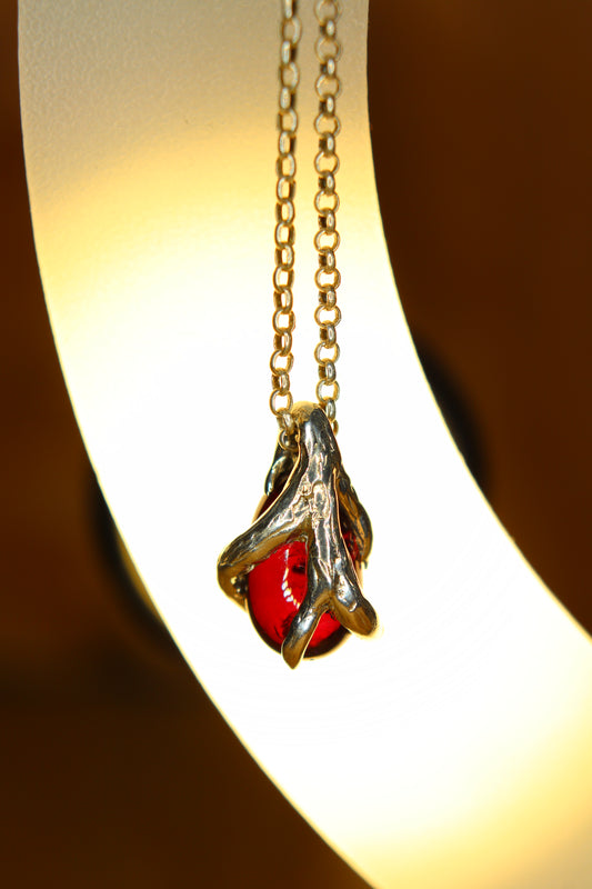 Ciondolo in argento con Ciottolo di Granato Piropo Burattato