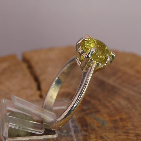 Snowflake Citrine Quartz Solitaire Ring in Silver