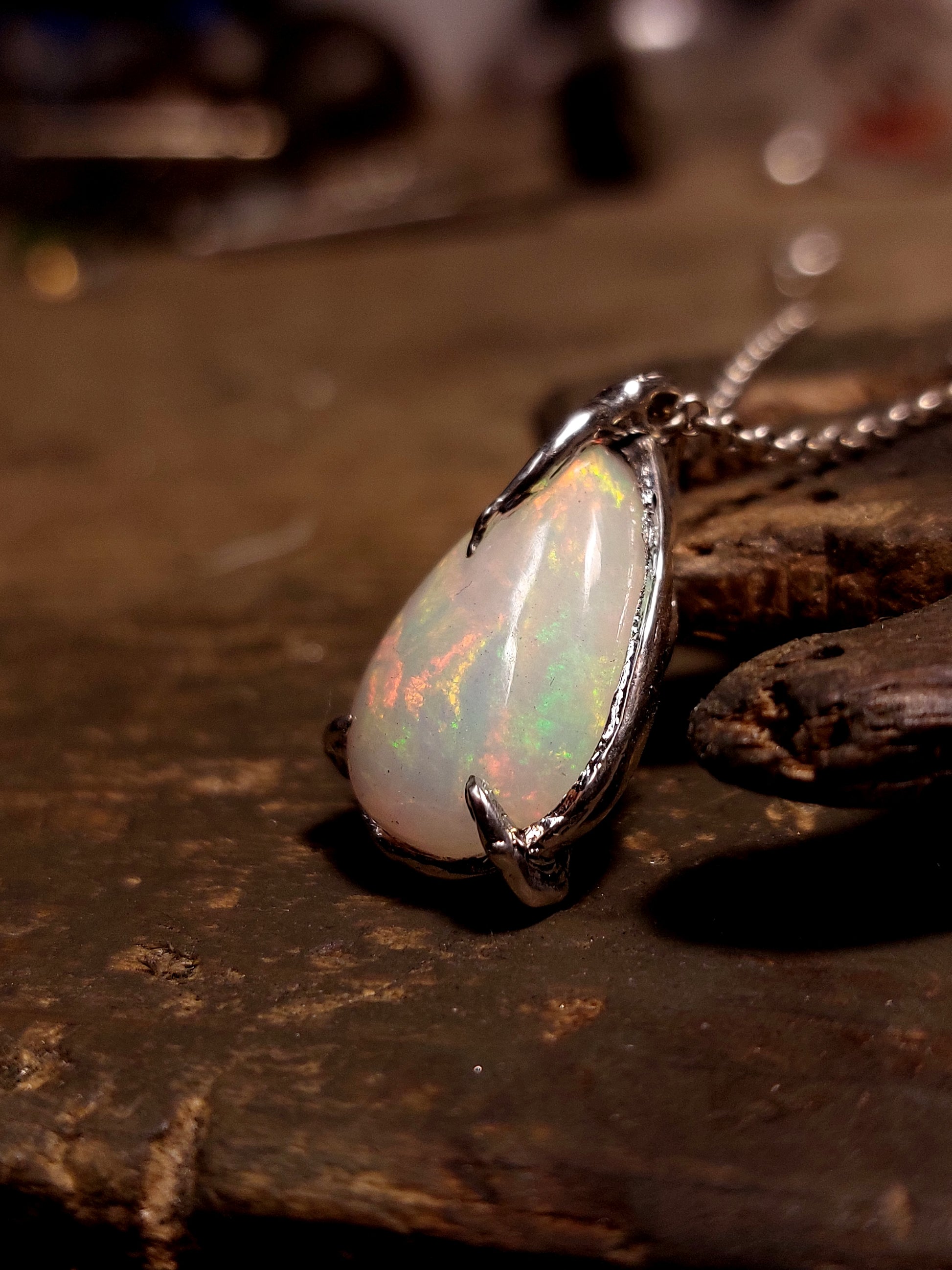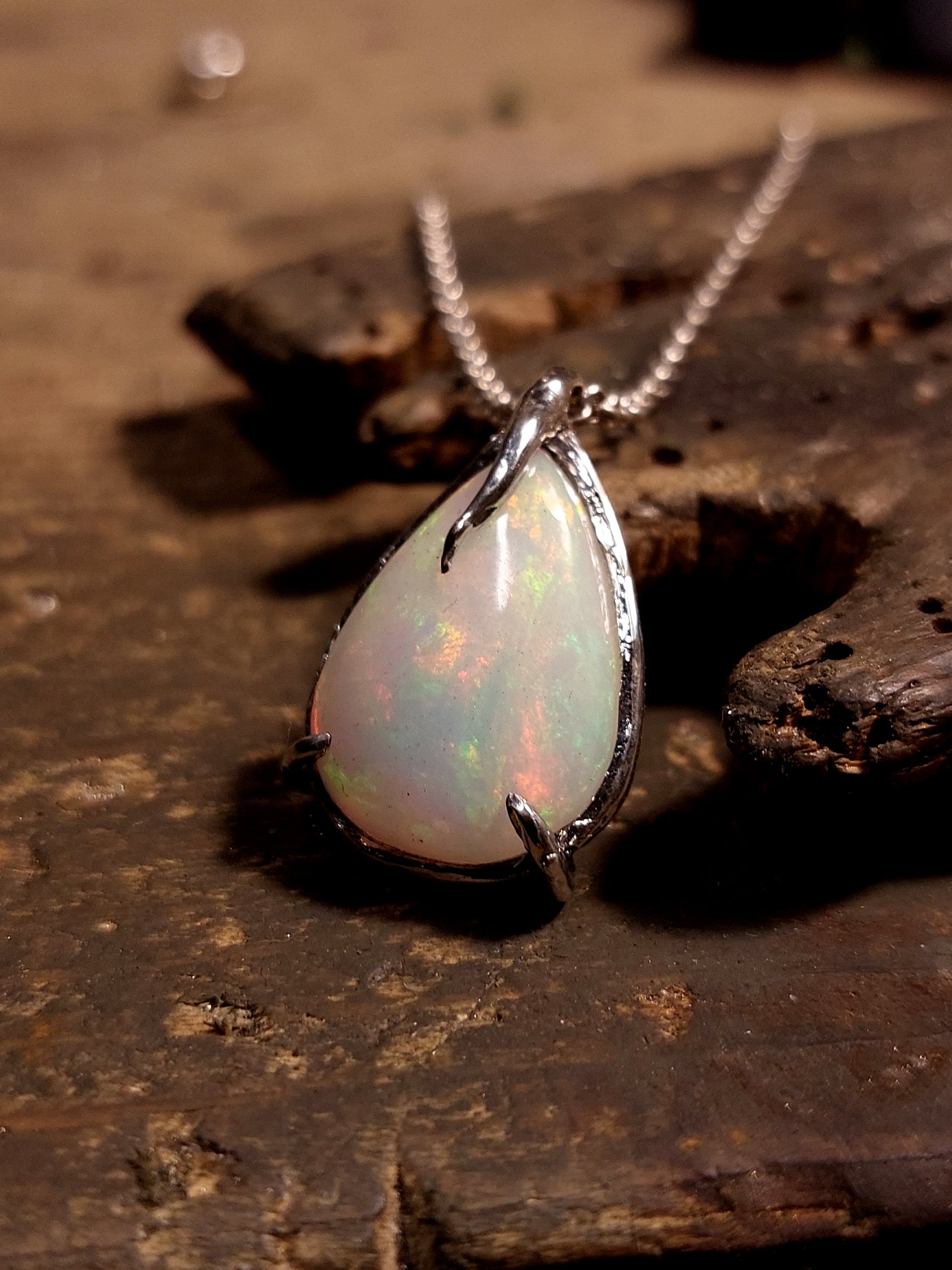 Ciondolo "Radici" con opale etiope a goccia