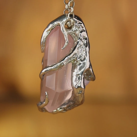 "Riflessi" ciondolo con Quarzo Rosa tagliato a Mano