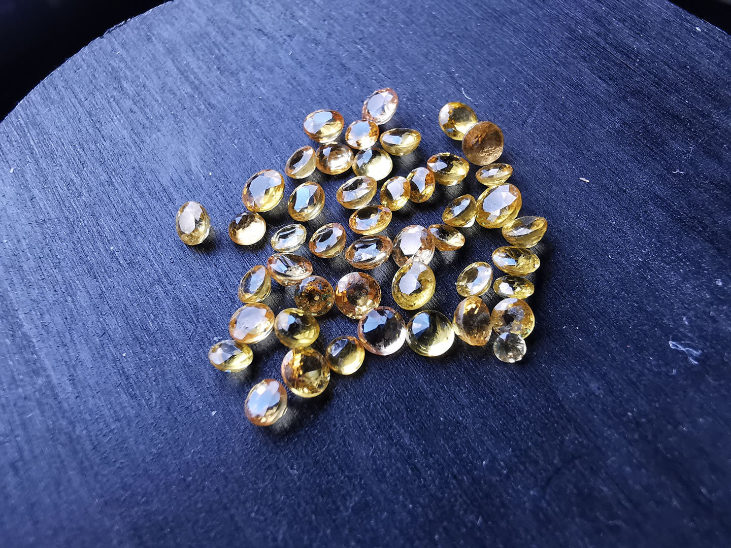 Zaffiri piccoli nelle dimensioni, ma dal colore giallo e giallo-aranciato molto intenso e brillante; con ogni probabilità indotto da un trattamento di termodiffusione al berillio